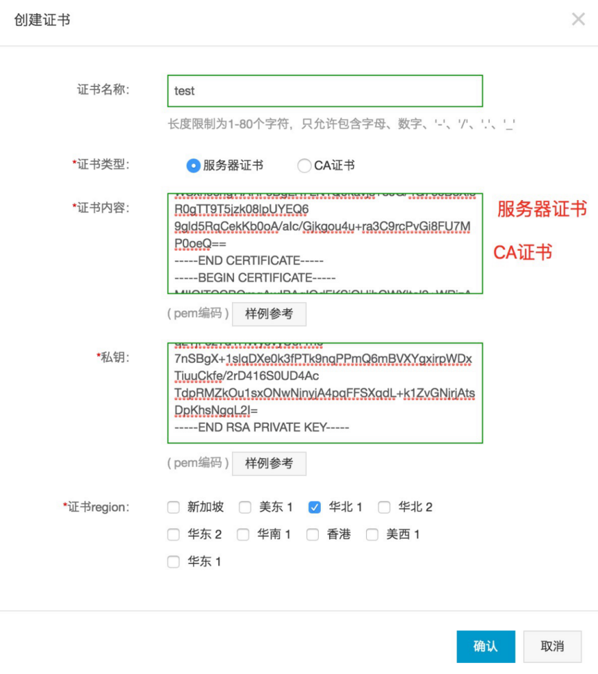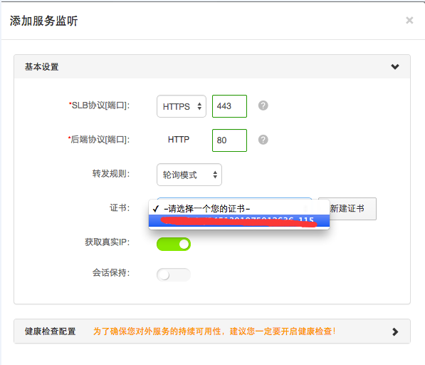 证书region: 选择同SLB实例的Region区域